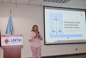 Este primer encuentro abordó el tema: Abordaje legal en el abuso sexual de niños y adolescentes. La doctora Janeth Rovetto, fiscal superior Sección Primaria de Delitos contra la Libertad e Integridad Sexual y la profesora de Derecho en la Universidad de Panamá, María Antonieta Adames, fueron las expositoras en esta jornada.