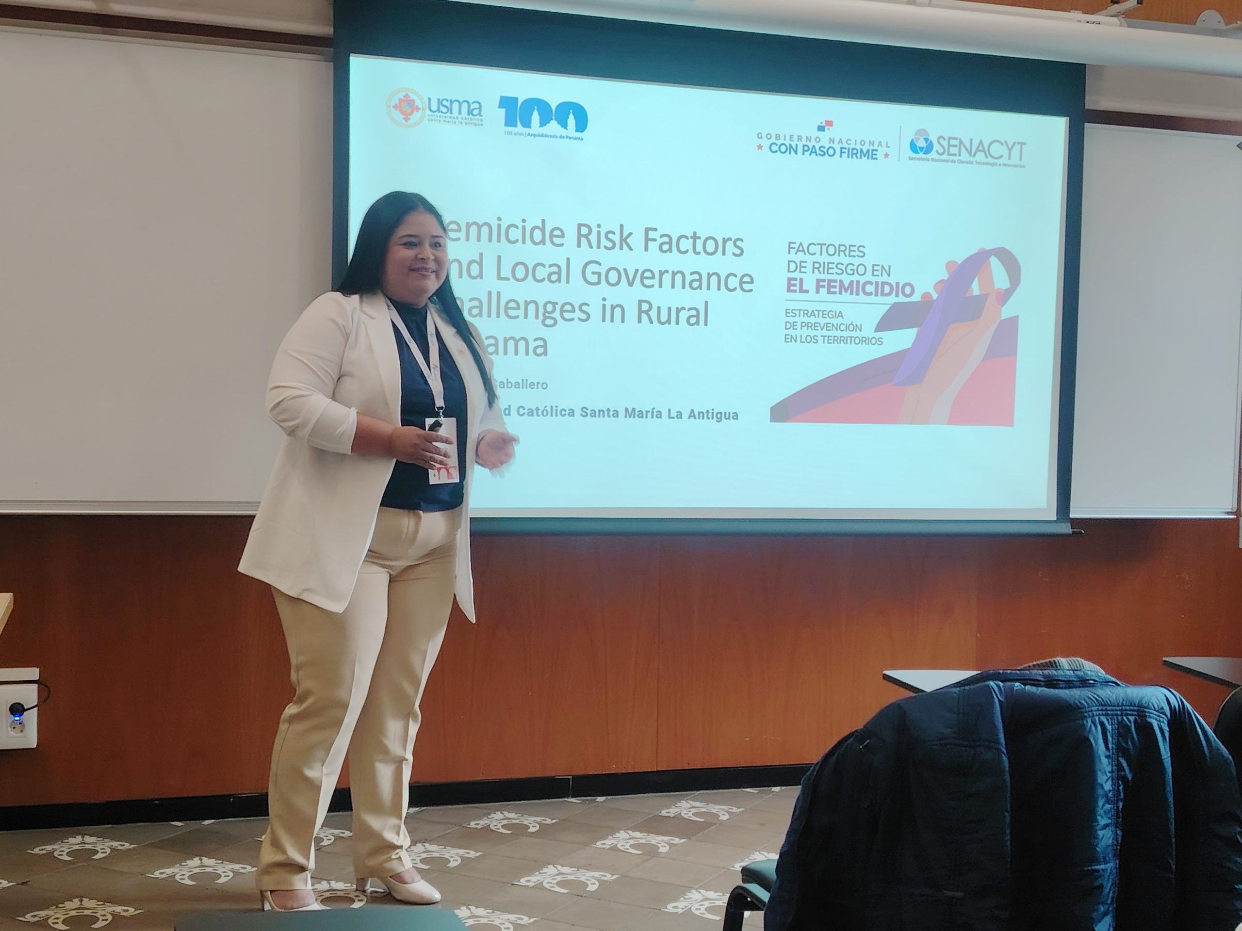 Durante su participación, la Licda. Caballero presentó la ponencia titulada “Factores de riesgo del femicidio y desafíos de la gobernanza local en el Panamá rural: un enfoque de prevención de la violencia basada en género”.