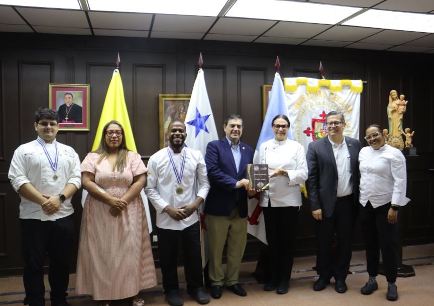 El rector magnífico de la Universidad Católica Santa María La Antigua (USMA), profesor Francisco Blanco, recibió, el 2 de octubre de 2025, a los estudiantes usmeños que ganaron en la Copa Culinaria, celebrada en Guatemala, en septiembre pasado.