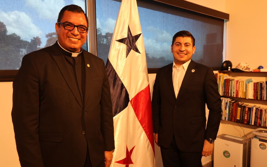 El rector magnífico de la Universidad Católica Santa María La Antigua (USMA) Padre Jorge Rivera-Rodríguez R., se reunió el 8 de enero de 2026, con el presidente de la Comisión de Educación, Cultura y Deportes de la Asamblea Nacional, Jorge Isaac Bloise.