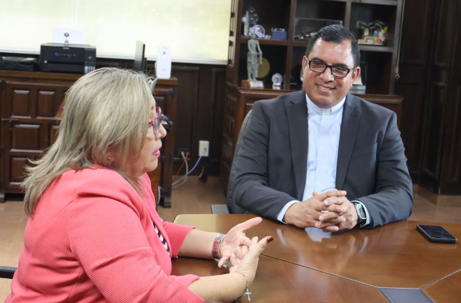 El rector magnífico de la Universidad Católica Santa María La Antigua (USMA) Reverendo Padre Jorge E. Rivera-Rodríguez R., se reunió el 26 de diciembre de 2025, con la viceministra de Educación, la profesora Agnes De León de Cotes.