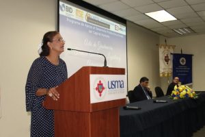 La vicerrectora académica, profesora Dalys Sánchez, habló de las habilidades blandas que también requieren los estudiantes y que, junto con los conocimientos técnicos, deben adquirir para poder complementar su formación como: comunicación asertiva, liderazgo, manejo de conflictos y otros.
