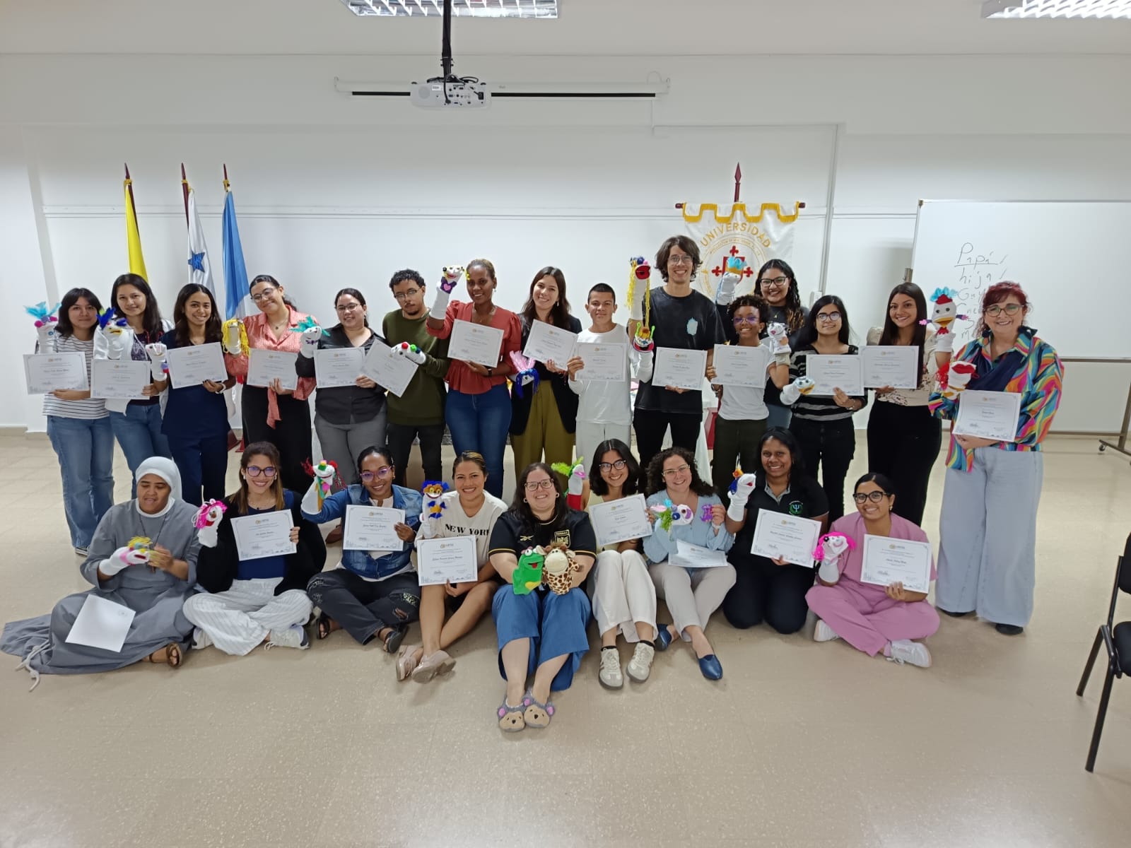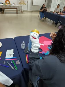 La jornada también incluyó la elaboración de títeres con medias, recurso lúdico que fomenta la creatividad, el diálogo y la expresión emocional, convirtiéndose en un valioso complemento para la intervención psicológica con población infantil y juvenil.