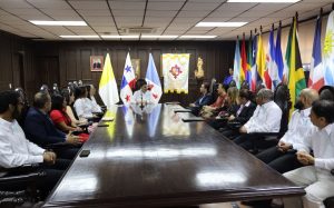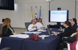 El rector Blanco junto con la secretaria general, profesora Rosa Guizado, la decana de la Facultad de Ciencias Sociales, María del Pilar Duclías, la directora de la Escuela de Comunicación Social, profesora Zailary Chávez, el ingeniero Enrique Olmedo, director de Tecnología, así como profesores de la carrera, recibieron a los pares externos, quienes llegaron al campus central acompañados de la licenciada Neila Ayarza por parte del Consejo Nacional de Evaluación y Acreditación Universitaria de Panamá (CONEAUPA).